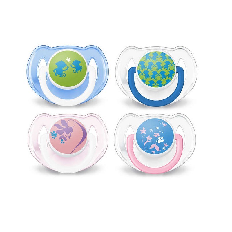 Avent Succhietti Monke Flow 0 18M 2 Pezzi per un comfort ottimale Le tettarelle Philips AVENT ortodontiche flessibili e simmetriche non interferiscono con lo sviluppo naturale del palato dei dentini e delle gengive del bimbo Tutti i succhietti Philips AVENT sono in silicone inodore e insapore