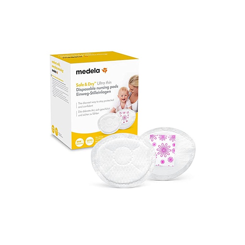 Ultrasottili e assorbenti quando fuoriesce una piccola o media quantità di latte materno le coppette assorbilatte monouso Safe Dry Ultra Thin di Medela ti fanno sentire sicura e protetta