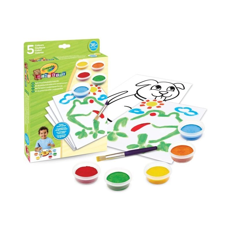 CRAYOLA MINI KIDS SET TEMPERE 5 barattolini di tempera pennello e fogli di carta