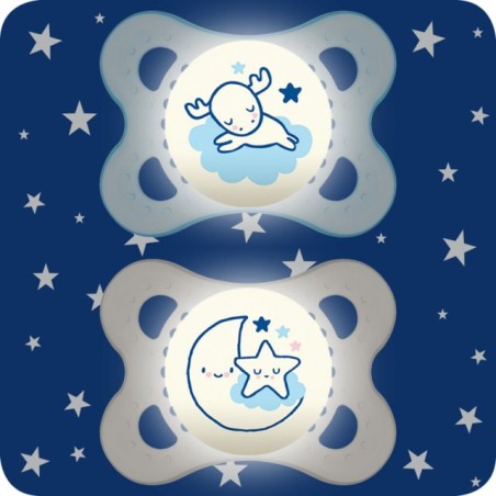 2 SUCCHIETTI MAM ORIGINAL NIGHT SKIN SOFT SILICONE 2 6 MESI BOY