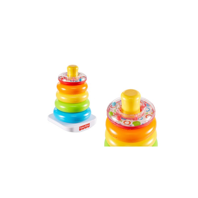 Il giocattolo Rock a Stack Fisher Price è un divertimento classico e colorato per il tuo piccolo I bambini più piccoli adoreranno afferrare tenere in braccio scuotere ed esplorare i cinque anelli colorati L anello più piccolo ha una superficie lucida e riflettente che il bambino può scoprire all interno con perline colorate e vorticose che emettono divertenti suoni di tintinnio Quando sono pronti per sedersi e impilare i bambini possono posizionare gli anelli sul palo quindi battere sulla base traballante per farlo oscillare avanti e indietro Lo stacking li aiuta a sviluppare la coordinazione occhio mano e li introduce al concetto di dimensione relativa mentre imparano a ordinare e impilare dal più grande al più piccolo N a Bat at base a bilanciere L anello superiore ha una superficie lucida con perline tintinnanti all interno Presenta i bambini alle dimensioni e all impilamento relativi Per bambini dai 6 mesi in su
