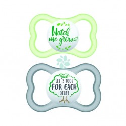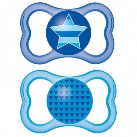 Succhietto ortodontico dal design innovativo con fori extra larghi per la circolazione dell'aria. Farfallina profilata per il massimo comfort. Tettarella morbida in SilikonSeta brevettato, con valvola interna di ventilazione. 6+ mesi.
