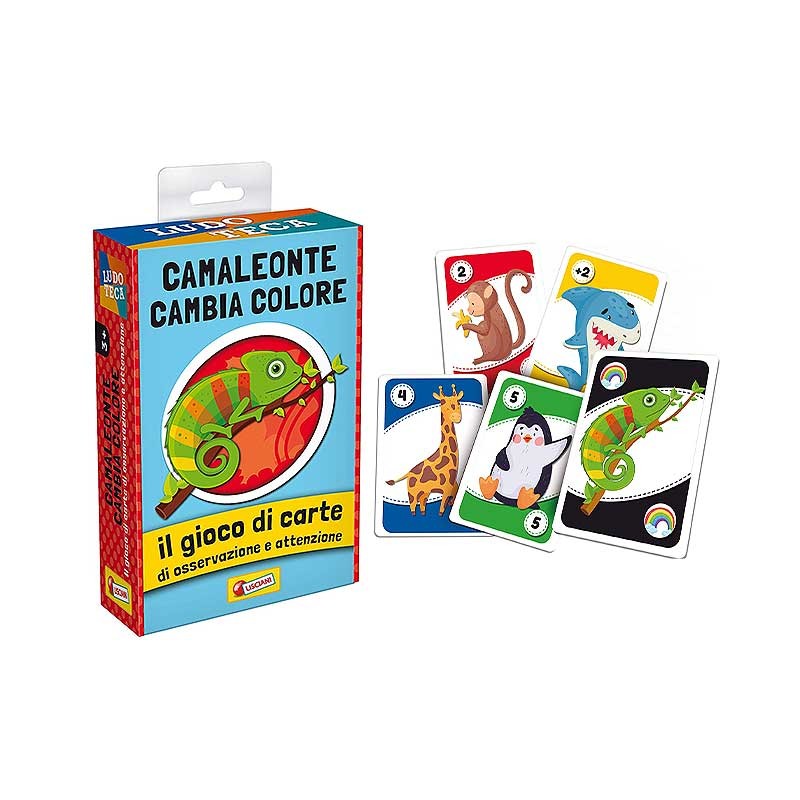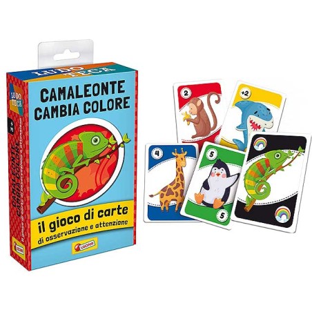 Con questo gioco di carte per tutta la famiglia potrai giocare con allegri animali e cercare di collezionare più carte possibile Se ottieni il camaleonte sei davvero fortunato Età 4 99 anni Made in Italy