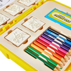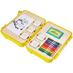 COMPOSIZIONE CONFEZIONE Nella valigetta troverai 64 puzzle stickers 10 matite colorate 1 activity book 5 timbri in legno non trattato e gomma naturale e 1 inchiostro colore blu a base di glicerina lavabile