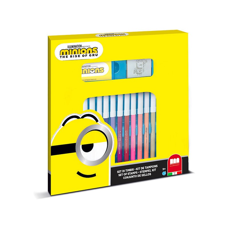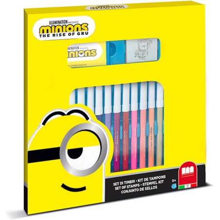 CONFEZIONE CON 18 PENNARELLI E TIMBRINI MINIONS