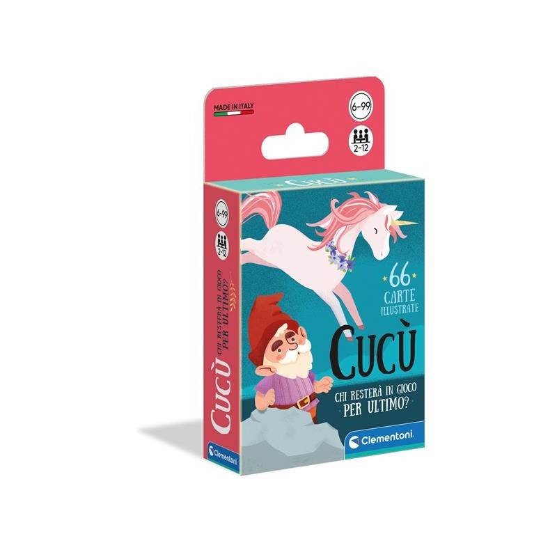 Il tradizionale gioco di carte Cucù si colora di tanti simpatici personaggi fantasy e di una variante di gioco speciale pensata appositamente per divertirsi con amici e parenti Contiene un mazzo di 66 carte arricchite da simpatiche illustrazioni che sapranno coinvolgere i bambini nel gioco Il mazziere distribuirà una carta coperta a ogni giocatore Il giocatore alla sua destra inizierà il turno e potrà scegliere se tenere la sua carta o scambiarla con quella del giocatore successivo Se il giocatore successivo ha però in mano una delle carte speciali potrà fare cucù e impedire lo scambio Al termine di ogni turno si scoprono le carte e chi ha la carta più bassa perde una vita Un grande classico dei giochi di carte rivisto in chiave moderna per far divertire adulti e bambini