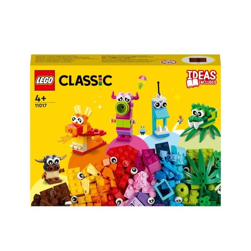 Include tutto ciò di cui i bambini hanno bisogno per costruire 5 mostri giocattolo più una scorta di mattoncini LEGO per costruire mostri extra e altre creazioni