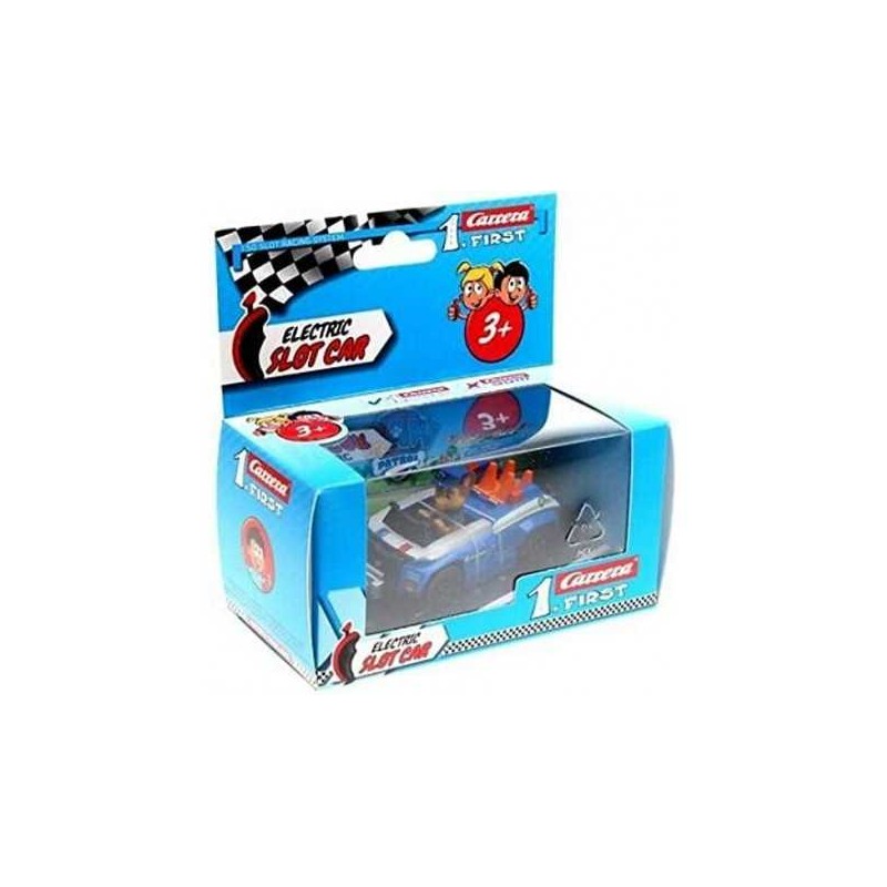 Paw Patrol Chase Veicolo con Personaggio Carrera First è la macchinina Paw Patrol perfetta per tutte le piste Carrera First Collezionale tutte e sfida i tuoi amici
