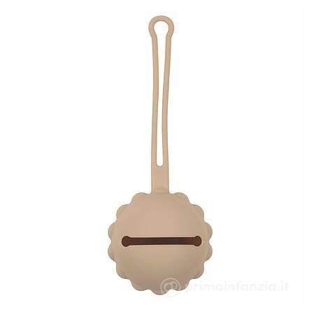 Con un pratico cinturino può essere facilmente fissato a una carrozzina o a una borsa per il cambio così il ciuccio rimane pulito e a portata di mano