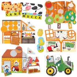 CONTENUTO 4 puzzle della fattoria delle forme 5 puzzle degli animali a due pezzi 5 puzzle degli animali lettere e parole 5 alberi dei numeri e delle quantità con frutti sagomati 20 tessere del memo dei cuccioli 1 puzzle dell orto con 8 ortaggi sagomati Guida didattica