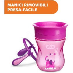 TAZZA A PROVA DI SCHIZZI La tazza ergonomica Chicco Perfect Cup con manici removibili è facile da impugnare ed è pensata per i bambini dai 12 mesi che stanno imparando a regolare il flusso durante la