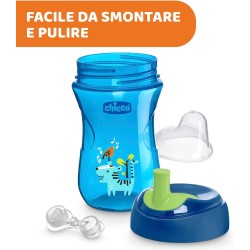 TAZZA ANTIGOCCIA La tazza antigoccia ergonomica Chicco Advanced Cup facile da impugnare è pensata per i bambini dai 12 mesi che stanno imparando a regolare il flusso durante la bevuta coordinando