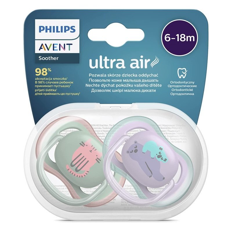 Ciuccio traspirante il ciuccio ultra air Philips Avent è un ciuccio leggero traspirante e senza BPA con fori per l aria extra large che lasciano respirare la pelle del bambino mantenendola morbida e asciutta