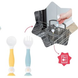 2 POSATE le posate di apprendimento flessibili di Badabulle sono composte da un cucchiaio e una forchetta che aiuteranno il vostro piccolino a mangiare come i grandi