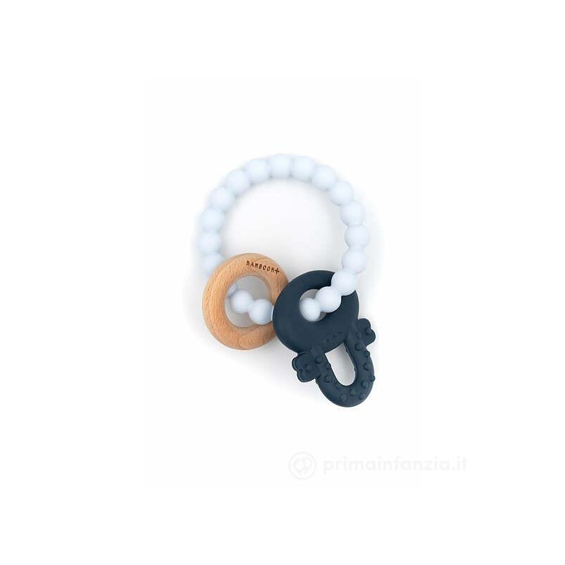 Massaggiagengive del marchio Bamboom in silicone con giochino a forma di chiave e anello in legno naturale