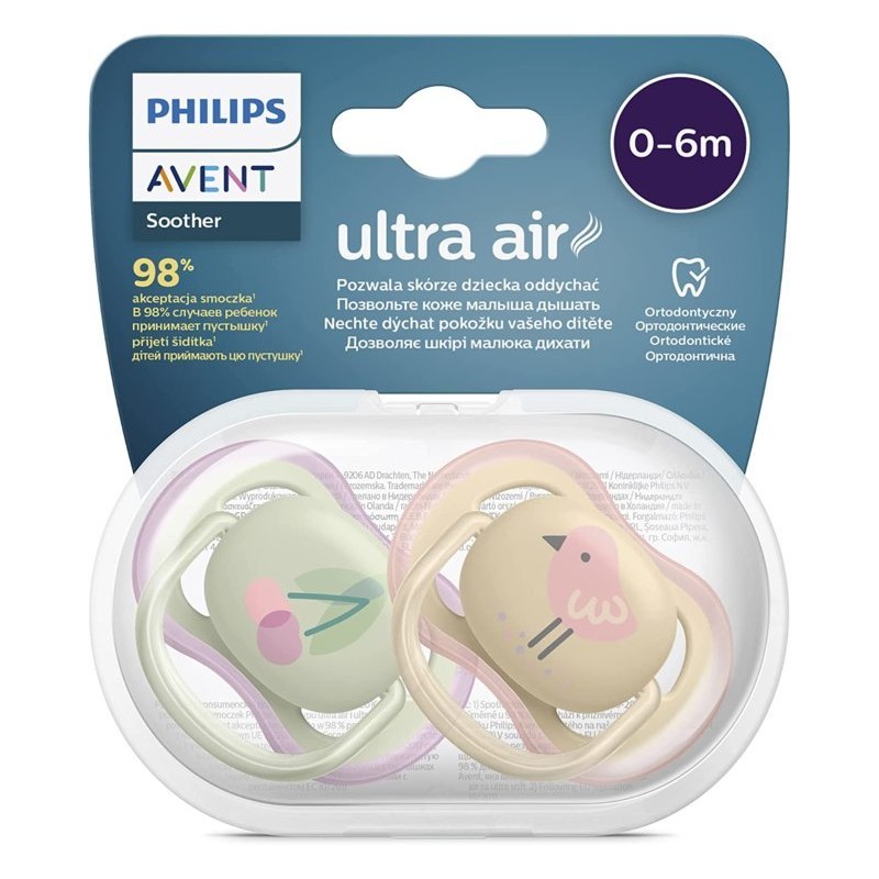 Ciuccio traspirante il ciuccio ultra air Philips Avent è un ciuccio leggero traspirante e senza BPA con fori per l aria extra large che lasciano respirare la pelle del bambino mantenendola morbida