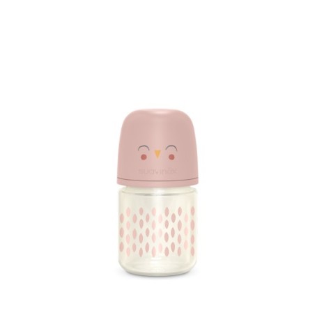 BIBERON VETRO 120 ML SILICONE BONHOMIA PIUMA ROSA