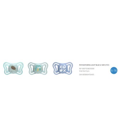 SUCCHIETTO LIGHT AZZURRO SILICONE 6 16 MESI 2 PEZZI