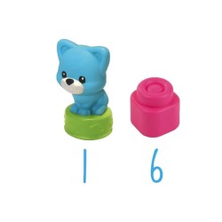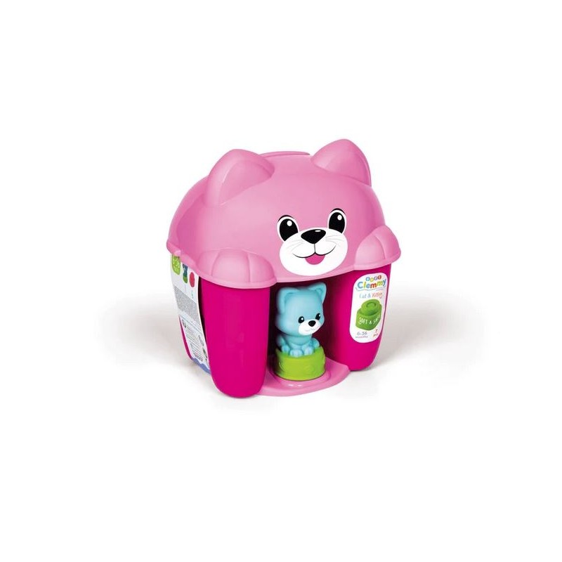 Uno speciale secchiello a forma di gattino che contiene 6 morbidi mattoncini Clemmy per far giocare i più piccoli in assoluta sicurezza