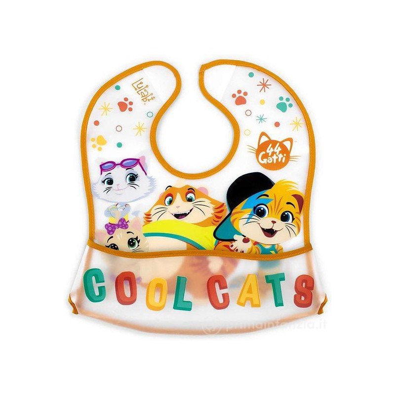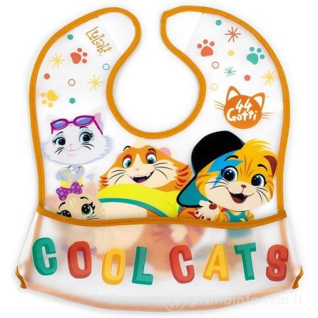 Bavaglino con tasca raccogli briciole dei 44 Gatti Realizzato in morbido peva impermeabile si pulisce facilmente Senza BPA Chiusura con velcro