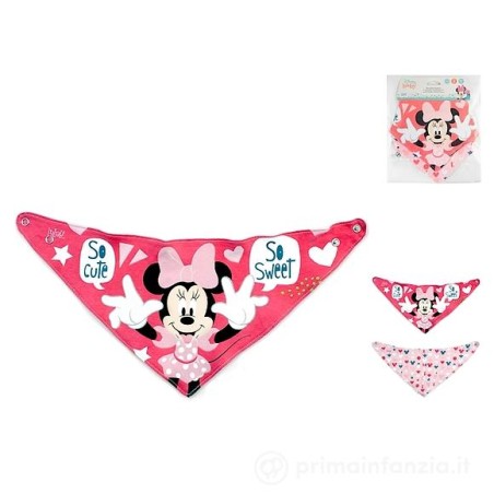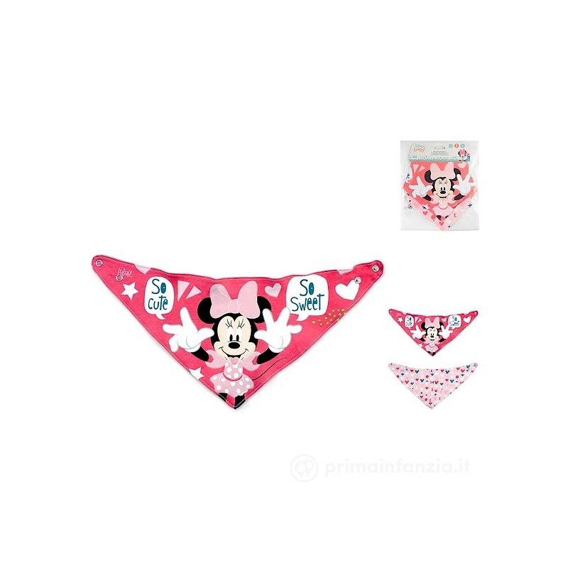 Confezione 2 bavaglini bandana Minnie Icon Disney in cotone Chiusura con bottoncini regolabile Lavaggio a mano massimo 40 gradi
