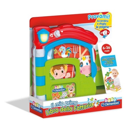 Girando le pagine e premendo il tasto luminoso sul tetto della fattoria il bambino potrà conoscere gli animali e i loro versi scoprire le prime lettere i numeri e le forme