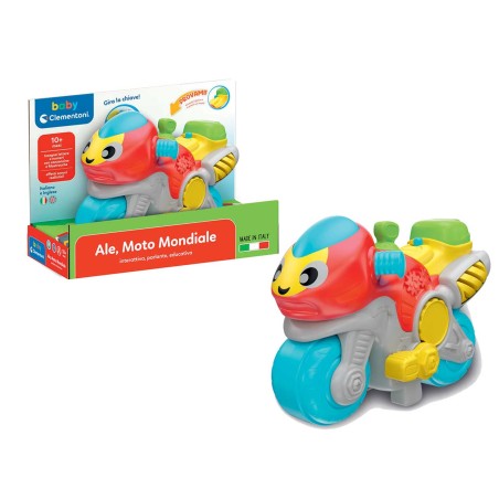 Baby motorbike new ita una coloratissima moto che è anche un divertente centro attività elettronico Supporta il bambino nell apprendimento di lettere e numeri grazie ai tasti interattivi il bauletto da premere e la chiave da girare stimola la manualità la percezione visiva e uditiva e supporta lo sviluppo e la comprensione della relazione causa effetto Gli elementi meccanici ed interattivi aiutano ad affinare la motricità fine e la coordinazione occhio mano i contenuti educativi sono in lingua italiana e inglese