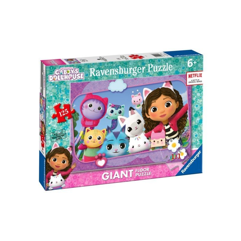 COLLEZIONE PUZZLE GIANT GABBY S DOLLHOUSE sviluppa la creatività con i puzzle giganti da 125 pezzi di Gabby s Dollhouse per bambini dai 6 anni in su grazie alla tecnologia Soft Click ogni pezzo di puzzle si incastra perfettamente