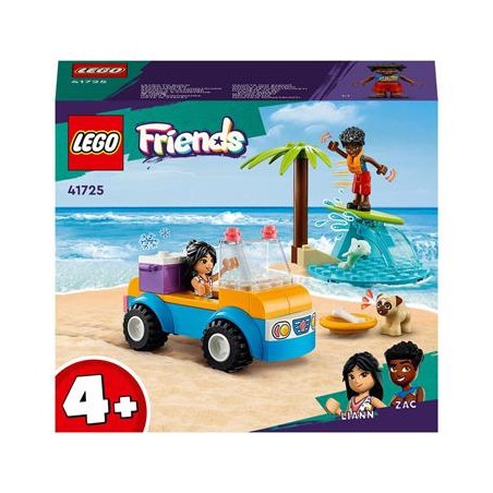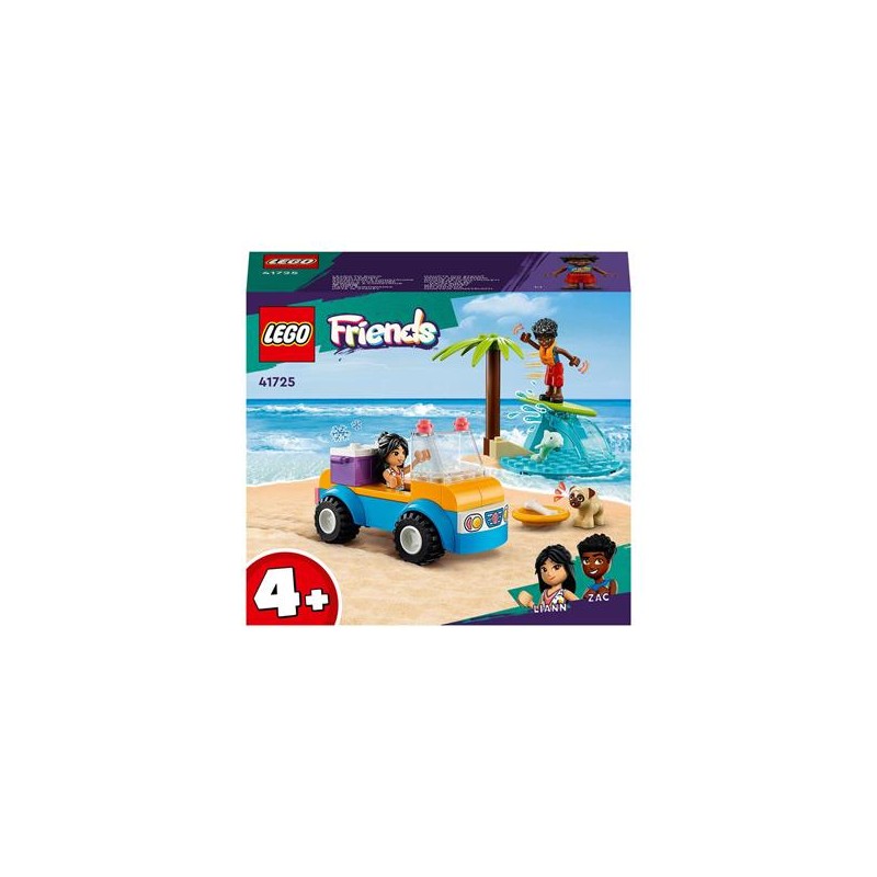 Fa scoprire ai bambini dai 4 anni in su il mondo LEGO Friends con il set Divertimento sul Beach Buggy che include una macchina giocattolo una tavola da surf 2 mini bamboline e 2 figure di animali La coloratissima auto LEGO da spiaggia ha un box frigo con una banana e un gelato mentre l elemento onda include una palma costruibile con cui giocare di ruolo in divertenti scenari estivi Sono incluse le mini bamboline LEGO Friends di Liann e Zac una tavola da surf una figura di delfino e una di cane carlino con osso e ciotola per l acqua Questo playset LEGO Friends per bambini bambine ragazzi e ragazze dai 4 anni in su permette ai piccoli costruttori di imparare attraverso il gioco simulando avventure estive in spiaggia I set LEGO 4 per bambini alle prime armi contengono un pratico Starter Brick pronto all uso e istruzioni digitali nell app LEGO Builder con cui aiutare i bambini a costruire in sicurezza