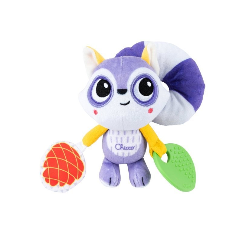 Il gioco offre tantissimi stimoli per il bambino la foglia in plastica morbida per la dentizione un pendente in tessuto a forma di pigna che emette un fruscio e sonagli all interno del corpo