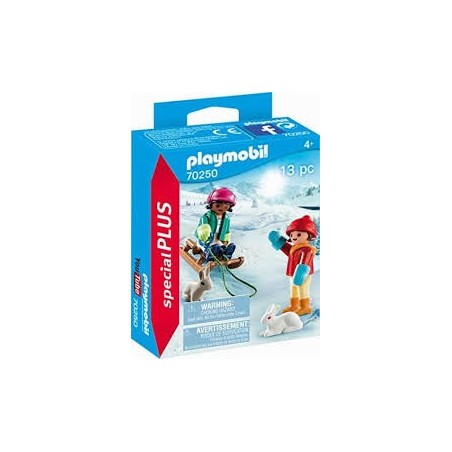 Il divertimento sulla neve non finisce mai Il prodotto playmobil special plus 70250 include due figurine tipo bambini con giacche guanti e cappello uno slittino e due amici animali