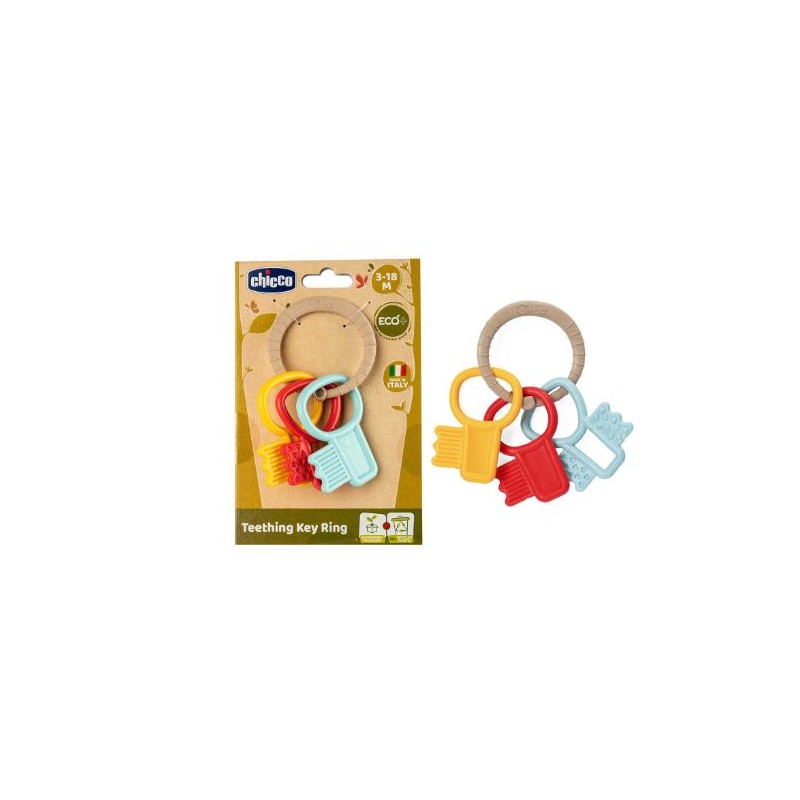 TRILLINO DENTIZIONE Le Chiavi Eco sono realizzate senza vernici perciò sono sicure anche se vengono portate alla bocca Gli elementi in rilievo sono stati sviluppati infatti per aiutare il bambino a lenire le gengive durante la dentizione