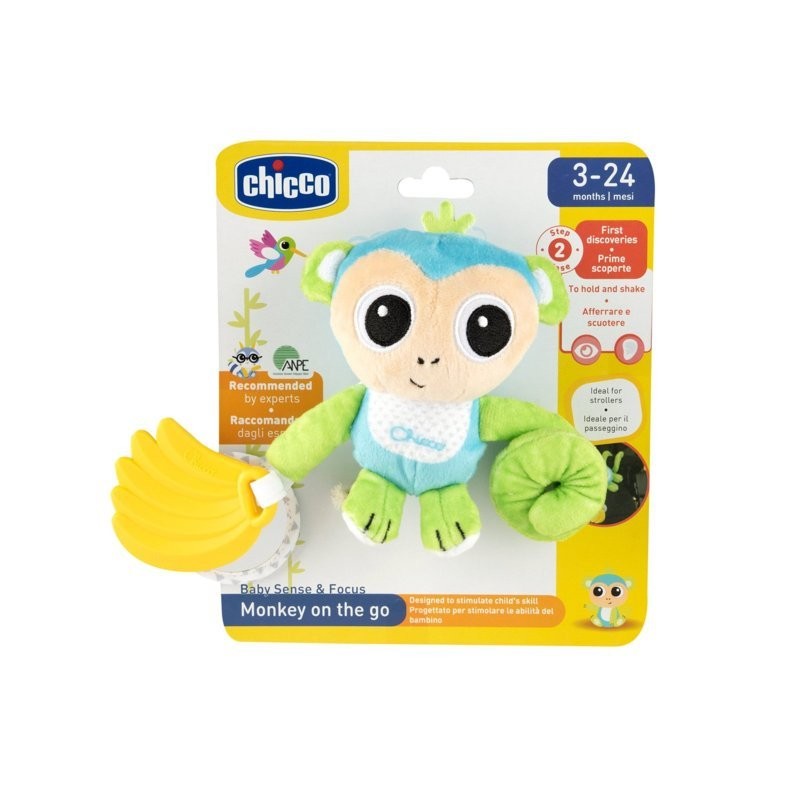Una simpatica scimmia da portare sempre con sé Il lungo braccio elastico facilita il fissaggio a carrozzine passeggini e seggiolini
