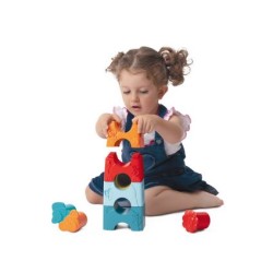 GIOCO 2IN1 Con la sua doppia modalità di gioco il divertimento si moltiplica Sviluppa le capacità cognitive e la coordinazione occhio mano grazie ai pezzi da impilare per costruire una torre o per inventare animali sempre nuovi