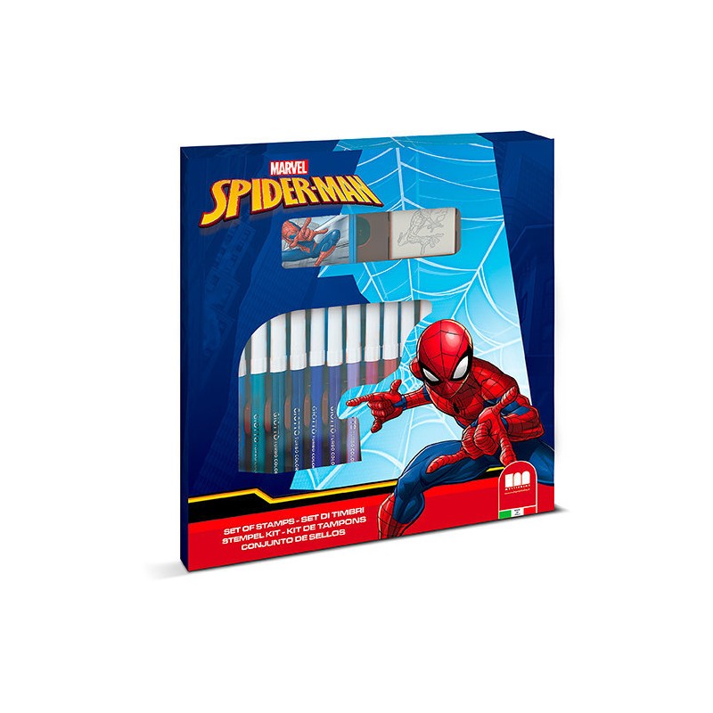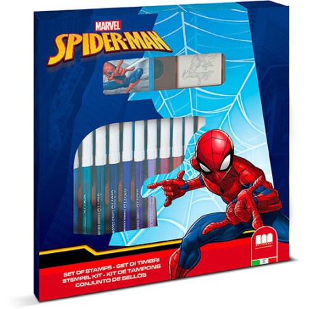 CONFEZIONE CON 18 PENNARELLI E TIMBRINI SPIDERMAN