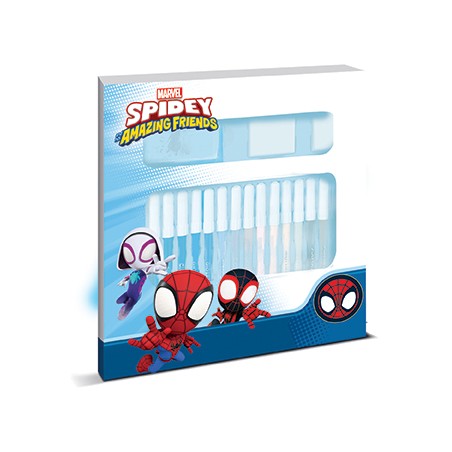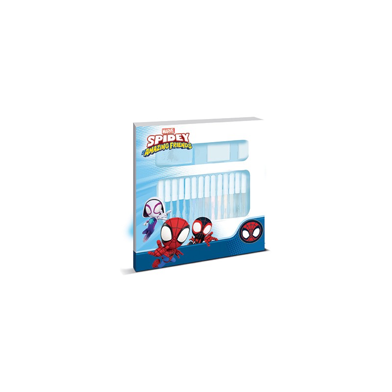 CONFEZIONE CON 18 PENNARELLI E TIMBRINI SPIDEY