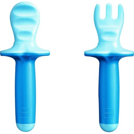 Design sicuro il set mam posate composto da forchetta e cucchiaio ha un design sicuro pensato per proteggere i piccoli in quanto dispongono di mascherina protettiva