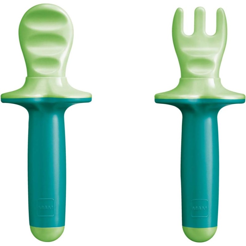 Design sicuro il set mam posate composto da forchetta e cucchiaio ha un design sicuro pensato per proteggere i piccoli in quanto dispongono di mascherina protettiva Con scanalature le posate bimbi del set dispongono di una superficie scanalata ideale per i bimbi che non sono ancora capaci di raccogliere il cibo con il cucchiaio Facili da usare Queste mini posate sono incredibilmente facili da usare grazie all impugnatura morbida e alla superficie gommata che ne facilita la presa Sviluppato da esperti le innovazioni mam vengono messe in commercio solo una volta approvate da esperti medici il set posate mam è privo di bps e bpa