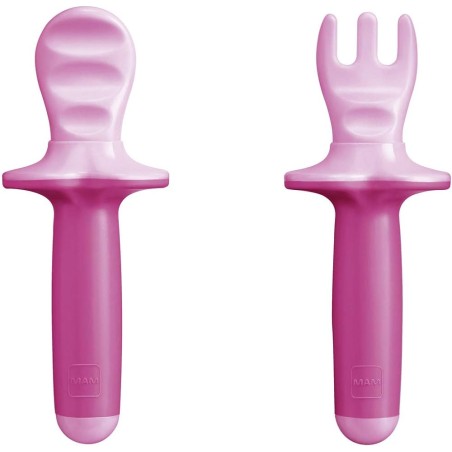 Design sicuro il set mam posate composto da forchetta e cucchiaio ha un design sicuro pensato per proteggere i piccoli in quanto dispongono di mascherina protettiva Con scanalature le posate bimbi del set dispongono di una superficie scanalata ideale per i bimbi che non sono ancora capaci di raccogliere il cibo con il cucchiaio Facili da usare Queste mini posate sono incredibilmente facili da usare grazie all impugnatura morbida e alla superficie gommata che ne facilita la presa Sviluppato da esperti le innovazioni mam vengono messe in commercio solo una volta approvate da esperti medici il set posate mam è privo di bps e bpa
