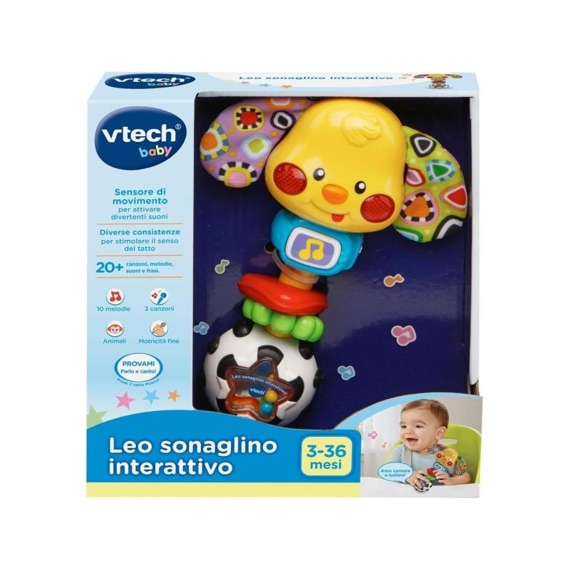 Grazie al sensore di movimento il sonaglino emette suoni e frasi divertenti