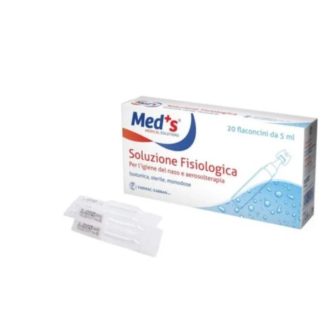 Soluzione Fisiologica sterile ed isotonica in 20 comodi flaconcini monodose da 5 ml l uno La soluzione è pronta per l uso ed è particolarmente indicata per l igiene quotidiana del neonato del bambino e dell adulto nonchè per l aerosolterapia Particolarmente indicata per la pulizia e l idratazione del naso dei bambini che non sono in grado di soffiarlo Pulisce le cavità nasali e rimuove il muco facilitando la respirazione e quindi il sonno Indicata inoltre per idratare le mucose del naso in condizioni ambientali che inducono secchezza