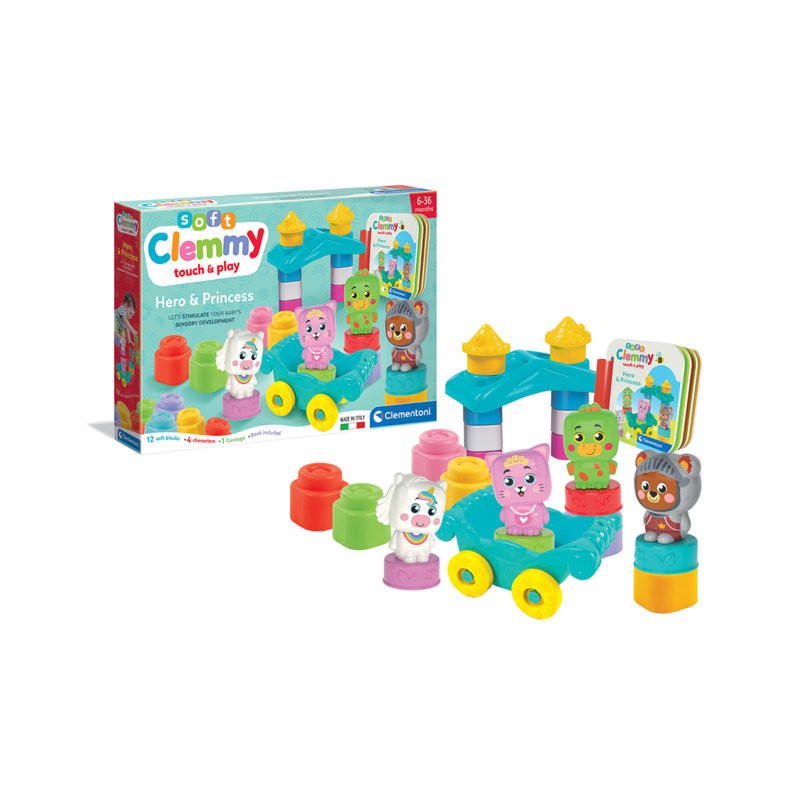 Tanti mattoncini colorati 4 fantastici personaggi un castello e una carrozza per immergersi nel libro delle fiabe Clemmy Hero Princess I mattoncini Clemmy lavabili e atossici sono pensati per far giocare i più piccoli in assoluta sicurezza Tanti colori vivaci che stimolano la percezione visiva l attenzione e la capacità di osservazione