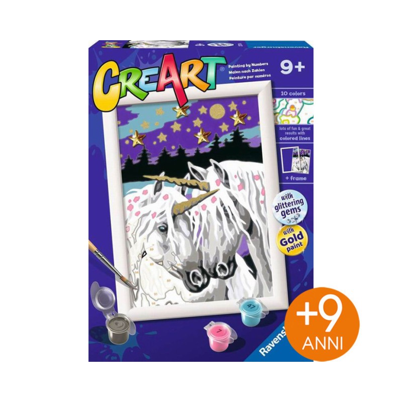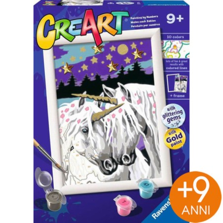 Sbizzarrisciti con CreArt Un kit completo per dipingere dei piccoli capolavori semplicemente con l aiuto di numeri e bordi colorati Educativo per i piccoli artisti e rilassante per i più grandi CreArt è lo svago perfetto Con CreArt puoi scegliere tra tantissimi soggetti e diversi livelli di difficoltà a seconda dei gusti e dell età a partire dai 7 anni I numeri ti guideranno all utilizzo dei colori da usare per dipingere ogni spazio E per i più piccoli le linee colorate assicureranno un risultato incredibile Dipingere con i numeri non è mai stato così semplice nella confezione trovi la tavola prestampata i colori acrilici a base d acqua in vaschette richiudibili e un porta tempere Il pennello e la cornice sono inclusi Rilassati esercitando la manualità fine e le tue abilità di concentrazione il risultato ti sorprenderà