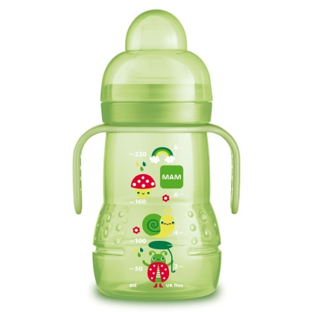 Presenta un beccuccio morbido Ha la Tettarella MAM antigoccia e beccuccio extra morbido con superficie in silicone SkinSoft per una facile transizione dall allattamento al seno o dal biberon alla tazza Presenta impugnature appositamente disegnate per le manine dei bambini Ha ampie aperture per un riempimento e una pulizia agevoli