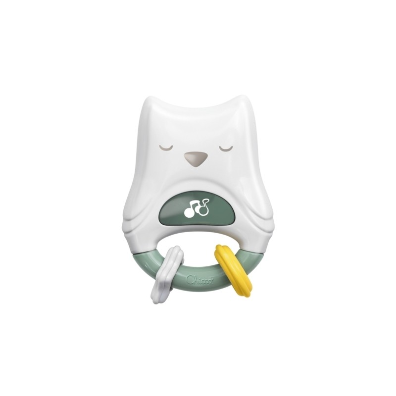 GUFO TRILLINO ELETTRONICO con luci musiche e suoni che si trasforma in un pannello lettino e in una delicata luce notte Compatibile con la maggior parte dei lettini in legno grazie ai pratici laccetti del sacchettino nanna