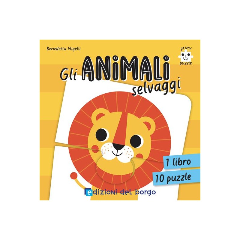 Primi puzzle è la collana dedicata ai più piccoli pensata per stimolare attraverso il gioco competenze logiche e motorie All interno della scatola un volume dedicato agli animali selvaggi con cinque aperture in cui ogni soggetto è presentato da un illustrazione e dal relativo nome e 10 puzzle da 2 pezzi cad con i soggetti esplorati nel libro Età di lettura da 1 anno