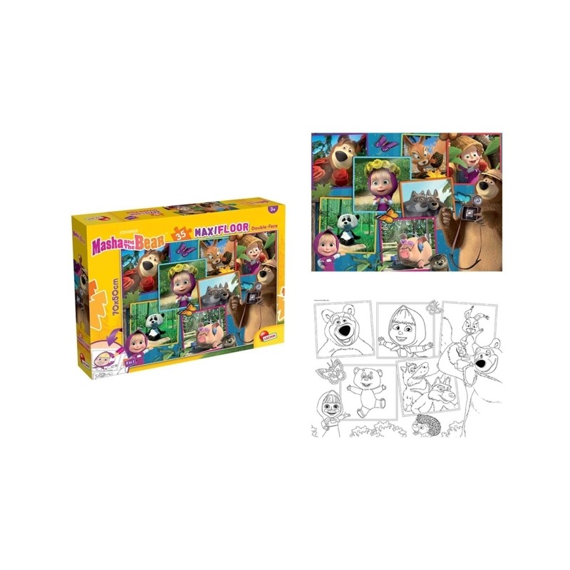 Divertiti a ricostruire le scene più belle di Masha e Orso dopo aver completato il puzzle il divertimento continua Sul retro della tavola troverai una scena in bianco e nero tutta da colorare
