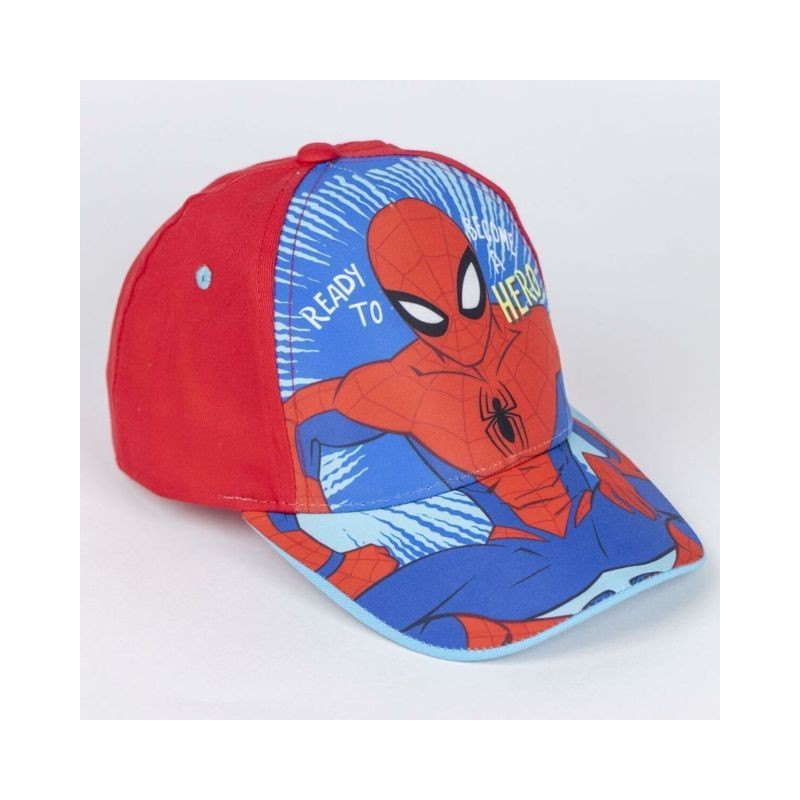CAPPELLO DA Spiderman Ispirato al fascino del supereroe con il senso aracnide più sviluppato questo berretto blu è realizzato in cotone e poliestere e presenta una splendida stampa Spiderman sulla parte anteriore del capo