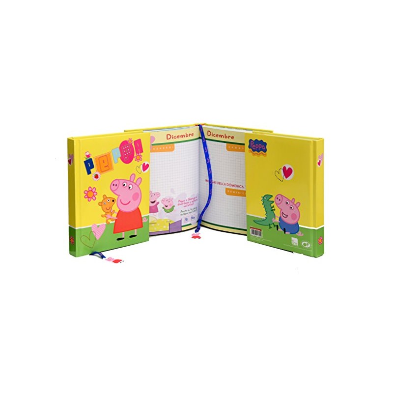 FANTASTICO DIARIO PEPPA PIG 12 MESI Copertina rigida e Lucida Ogni mese cambia la grafica delle pagine Dimensioni 19x14 cm Con Calamita Segna pagina e nastrino con personaggio in gomma