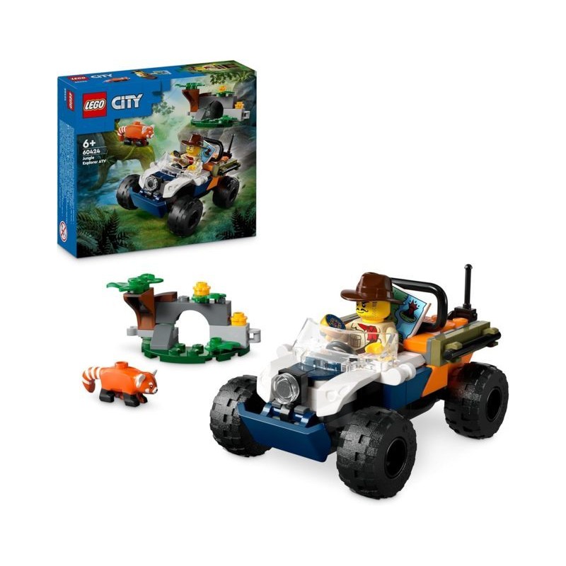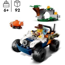 Cosa contiene la confezione Questo gioco della giungla LEGO City include un modellino di ATV LEGO da costruire una scena nella giungla una minifigure di esploratore e un panda rosso giocattolo